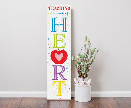 Teaching is a Work of Heart Porch Sign - 36" x 9.25" Apple Pattern Wooden Front Door Wall Decor - Handcrafted Home Decoration for Teachers
