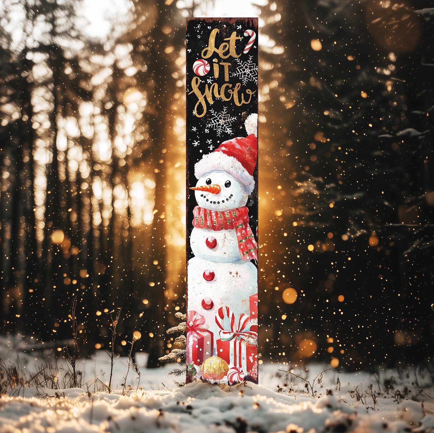 Rustic Snowman Let It Snow Christmas Porch Sign | Outdoor Winter Decor Gift