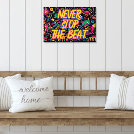 Vibrant "Never Stop The Beat" Wooden Wall Art - Boho Musical Home Decor