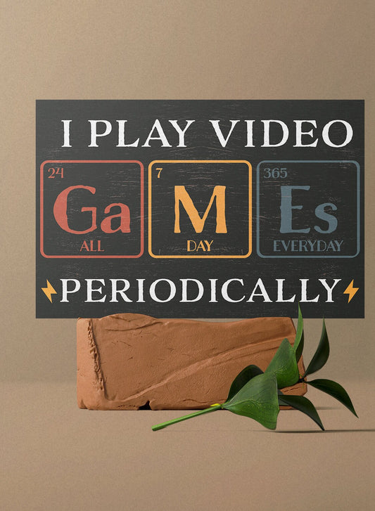 Gamer Gift: Humorous Retro Gaming Wooden Wall Sign - "I Play Video Games Periodically"