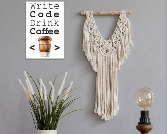 Tech Lover's Wooden Wall Art | 'Write Code Drink Coffee' Desk Sign