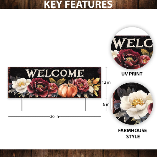 Autumn Farmhouse Welcome Porch Sign - 60" Rustic Outdoor Fall Decor