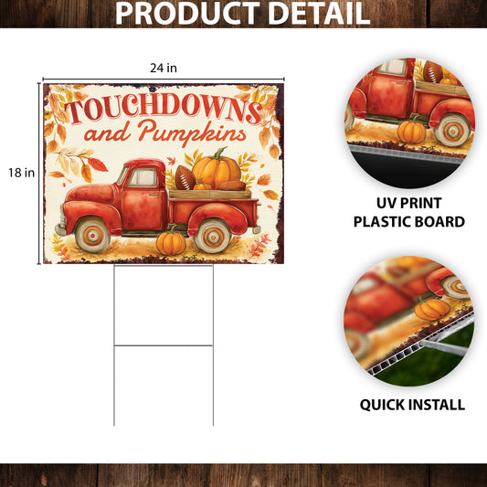 Festive Fall Touchdowns & Pumpkins Yard Sign | Autumn Farmhouse Lawn Decor