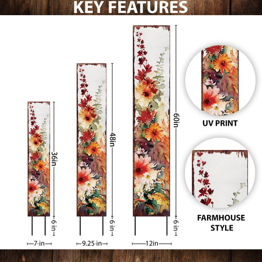 42in Fall Garden Stake | Watercolor Boho Floral Bouquet Decor | Ideal for Outdoor Decor, Yard Art, and Garden Decorations