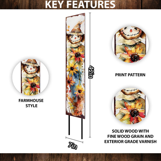 Charming Fall Scarecrow Garden Stake – 42" Watercolor Outdoor Yard Art