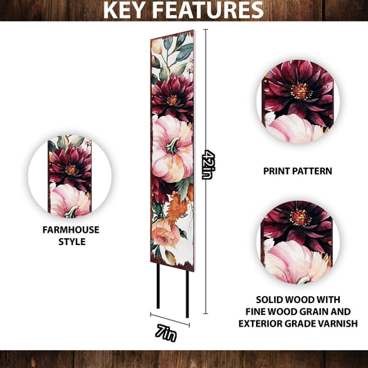 42" Fall Watercolor Floral Garden Stake - Boho Autumn Yard Art Decor