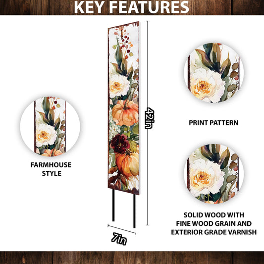 Elegant Watercolor Fall Garden Stake | 42in Pumpkin Yard Art Decor