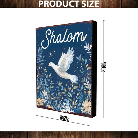 Hanukkah "Shalom" Wooden Tabletop Sign | Elegant Jewish Holiday Decor