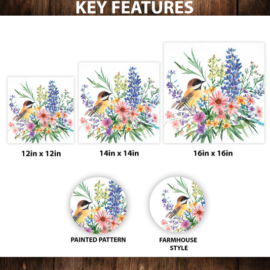 Summer Chickadee Wildflower Canvas Art | Vibrant Nature Wall Decor