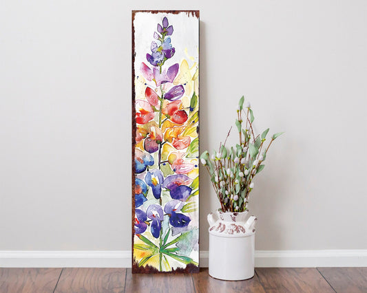 Spring Watercolor Lupine Porch Sign | 36" Floral Welcome Home Decor