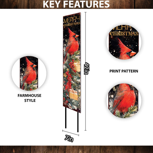 Joyful Cardinal Garden Stake - 42" Watercolor Winter Yard Art