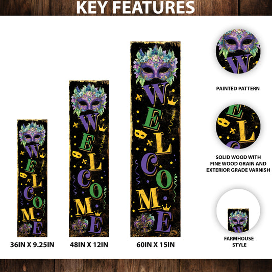 Mardi Gras Welcome Porch Sign | 36in Rustic Farmhouse Art