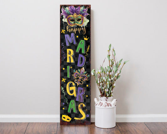 Festive Mardi Gras Welcome Porch Sign | Vibrant Wooden Entryway Decor