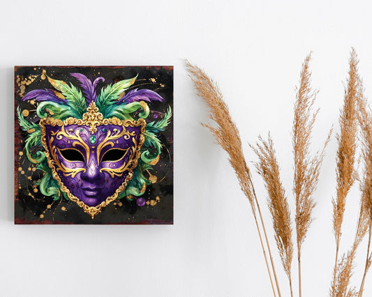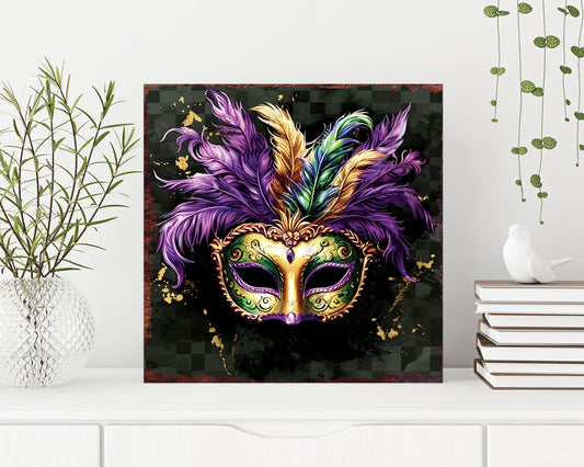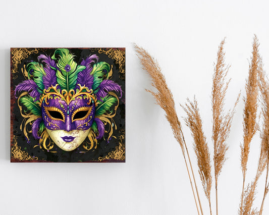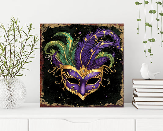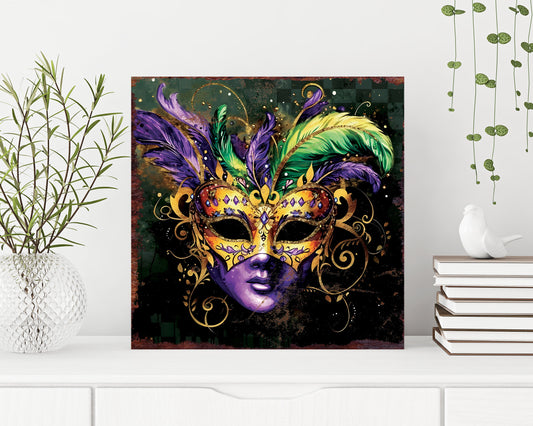 Festive Vintage Mardi Gras Wall Art | 12in Square Home Decor