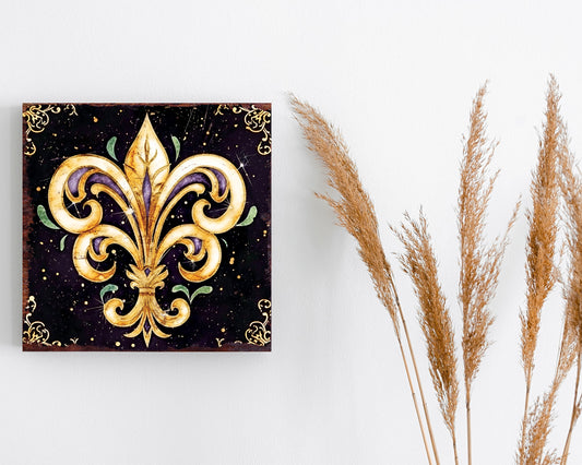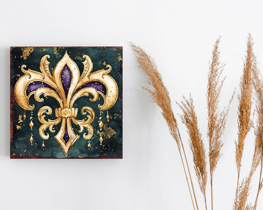 Mardi Gras Fleur De Lis Wall Art | Vintage Farmhouse Square Sign 12in
