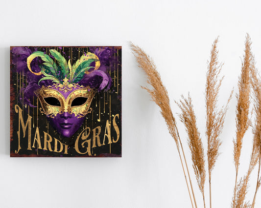 Vibrant Mardi Gras Wall Decor | Festive 12in Square Art Sign