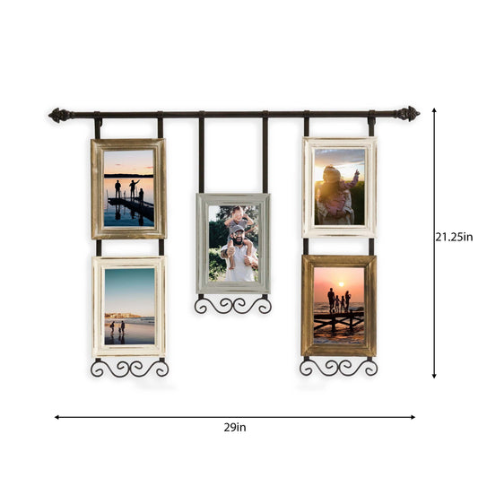 Wall Hanging PhotoFrames Collage Wall Decor, Rustic Solid Wood 5 photo Frame set Fit for 4x6in
