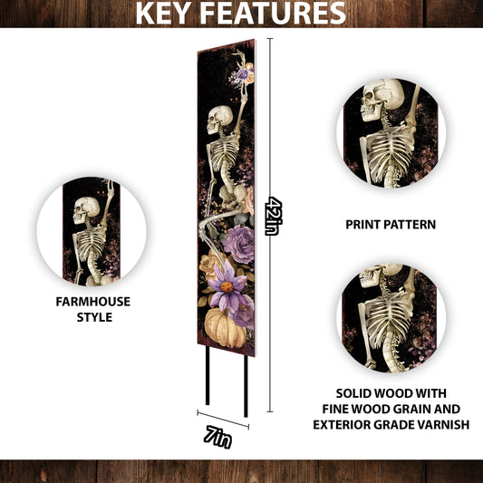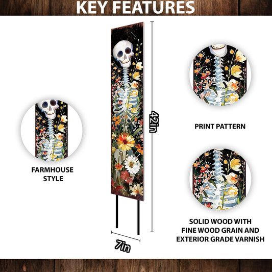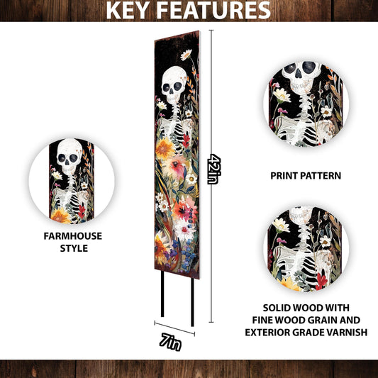 Whimsical Watercolor Skeleton Garden Stake - 42" Wildflower Halloween Decor