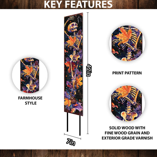 Whimsical Watercolor Skeleton Garden Stake - 42in Wildflower Halloween Art