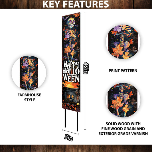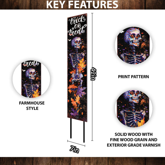 42" Trick or Treat Watercolor Skeleton Garden Stake | Whimsical Halloween Decor