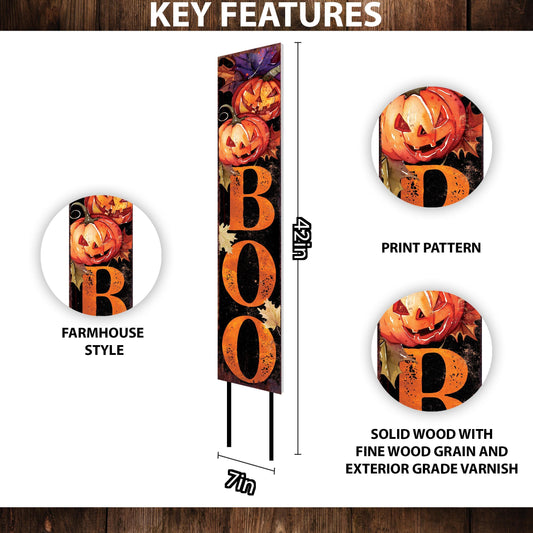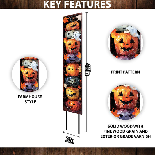 Whimsical Watercolor Jack-O'-Lantern Boo Halloween Garden Stake 42"