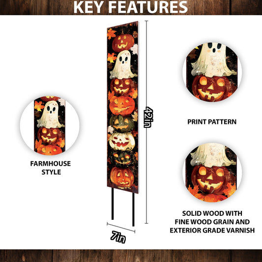 Whimsical Watercolor Ghost Halloween Garden Stake - 42" Wooden Yard Decor