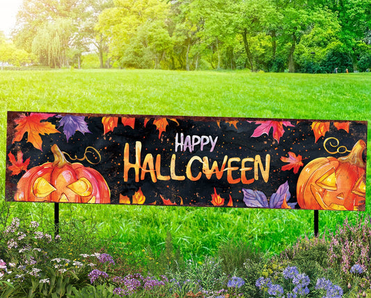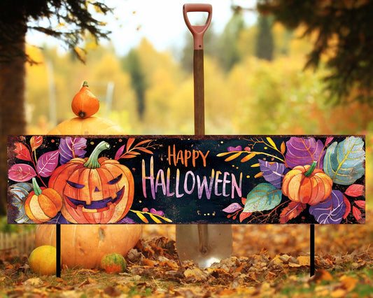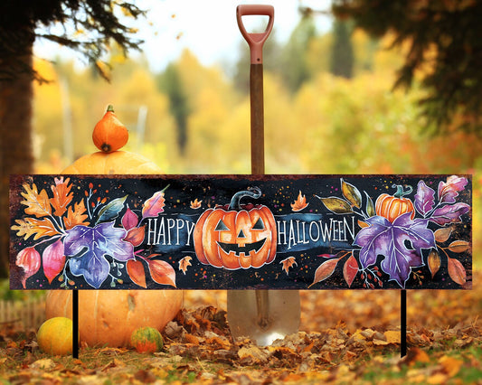 Happy Halloween Watercolor Garden Stake | Festive Outdoor Yard Art