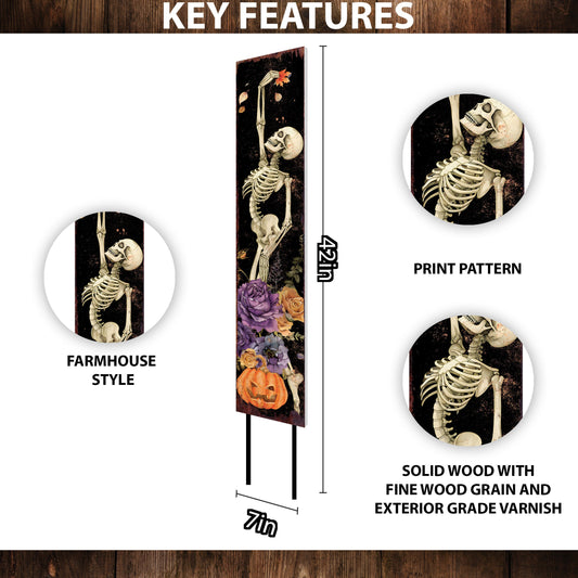 Charming 60in Dancing Skeleton Porch Sign - Rustic Farmhouse Halloween Welcome