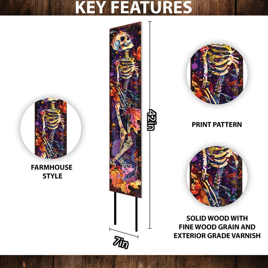 42" Halloween Watercolor Skeleton Garden Stake | Whimsical Outdoor Decor