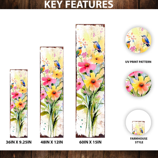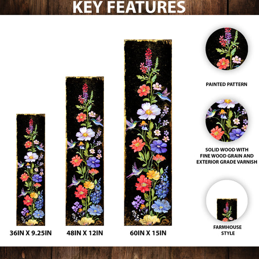 Spring Wildflower Porch Sign | Hummingbird Entryway Decor | UV Print Art