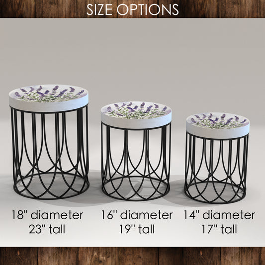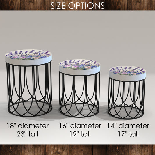 Charming Spring Lavender Accent Table | Round Floral Side Table