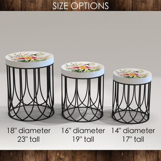 Spring Wildflower Hummingbird Accent Table | UV Print Round End Table Decor