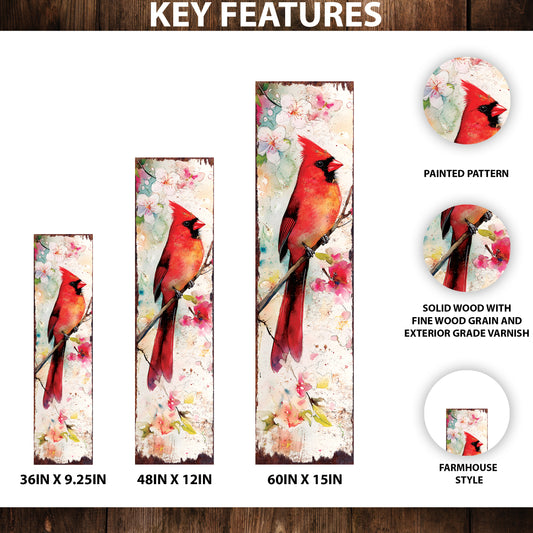 Spring Cardinal Porch Sign - Wooden Wildflower Welcome Plaque