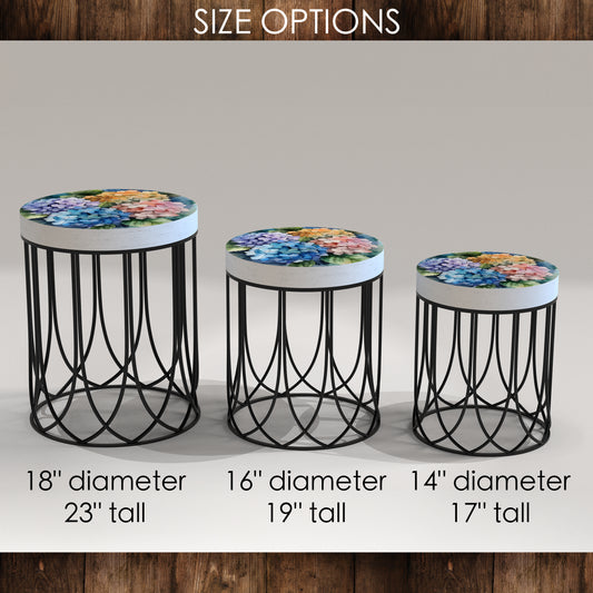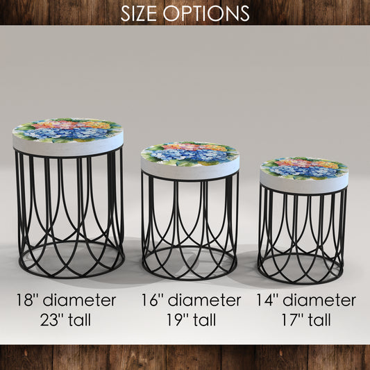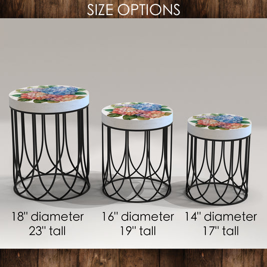 Spring Hydrangea Round Accent Table | Watercolor Floral Indoor Side Table