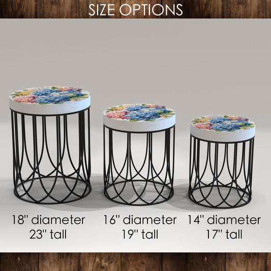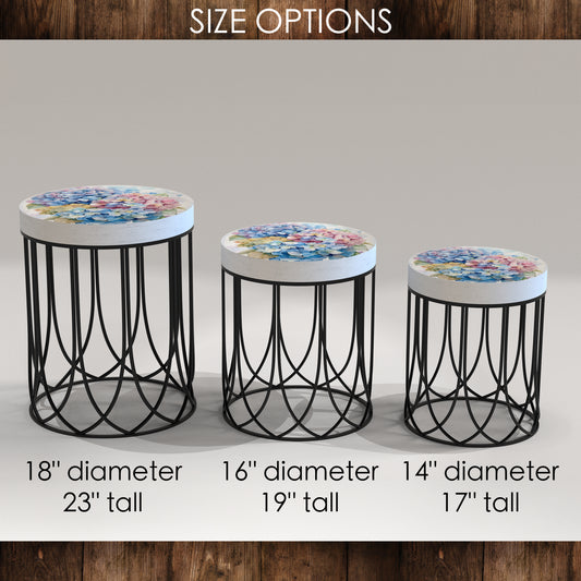 Spring Watercolor Hydrangea Accent Table | Round Side Table Decor