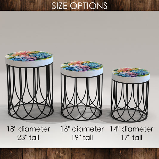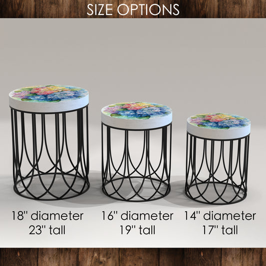 Spring Hydrangea Watercolor Accent Table | UV Print Round Side Table
