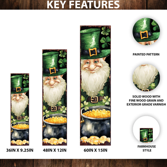 St. Patrick's Day Gnome Welcome Sign for Front Porch, St.Patrick's Outdoor Decor for Front Door