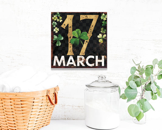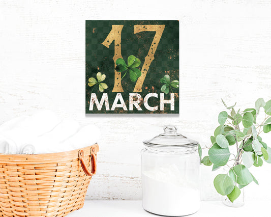 St. Patrick's Day Modern Farmhouse Shamrock Wall Art | 12in Lucky Canvas