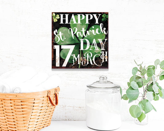 St. Patrick's Day Farmhouse Lucky Shamrock Canvas Wall Art 12in