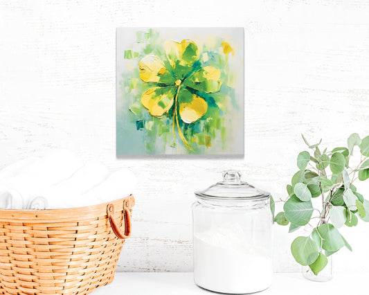 Lucky St. Patrick's Day Clover Canvas Sign - Vintage Farmhouse Wall Decor 12in
