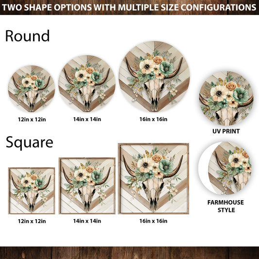 Summer Western Welcome Porch Sign - Bull Skull Floral Rustic Home Decor