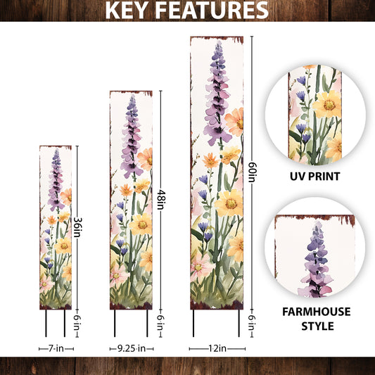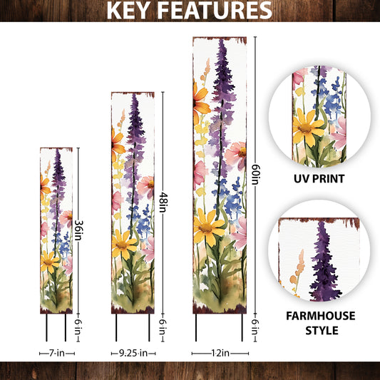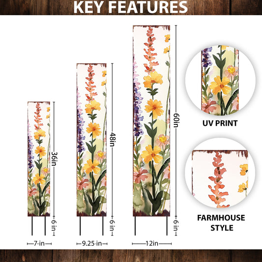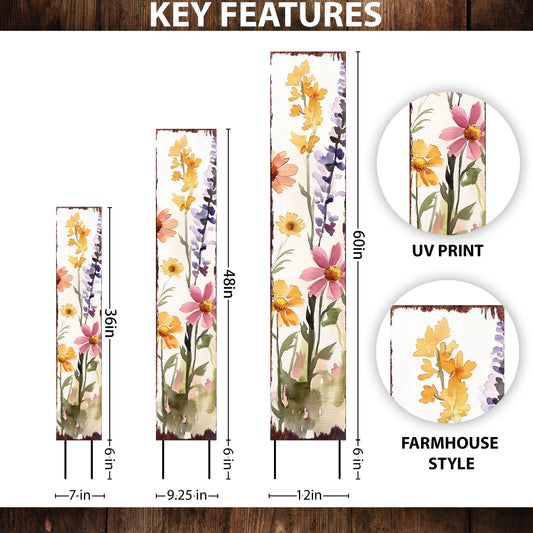 Vibrant Summer Wildflowers Garden Stake Sign | Farmhouse Outdoor Floral Yard Décor