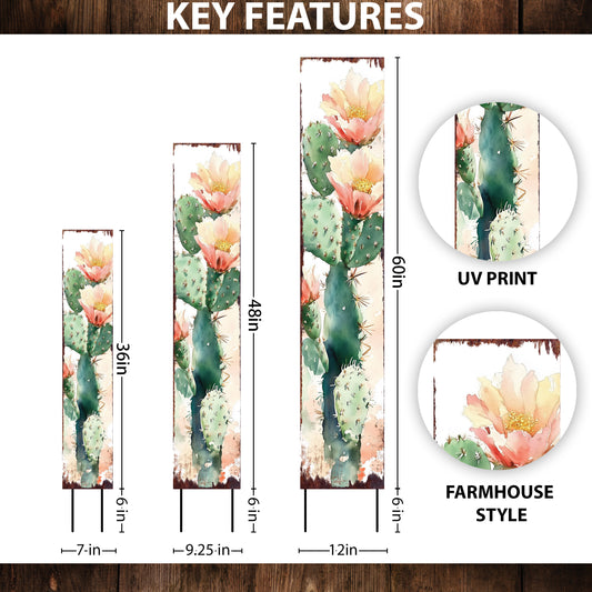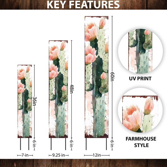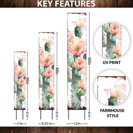Summer Cactus Garden Stake | Watercolor Farmhouse Outdoor Yard Decor