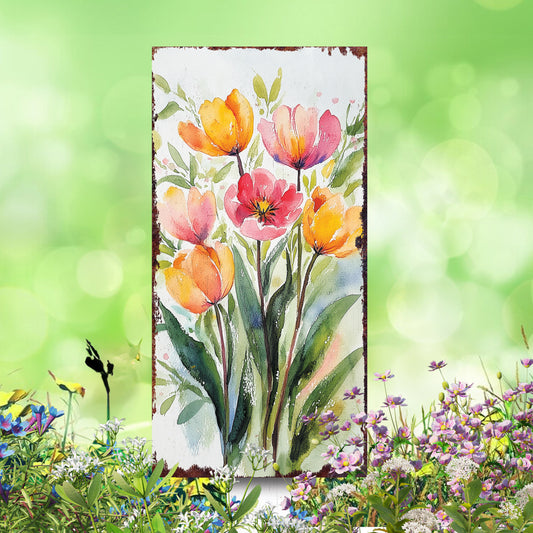 Spring Tulip Garden Stake | Vibrant Watercolor Yard Art | Outdoor Decor