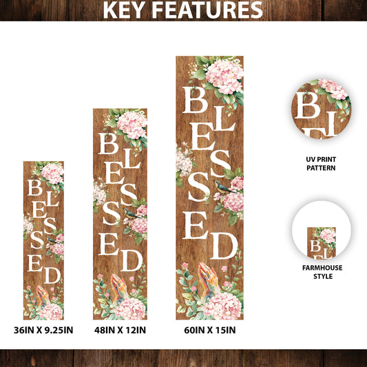 Spring Blessed Farmhouse Porch Sign | Floral Welcome Front Door Decor