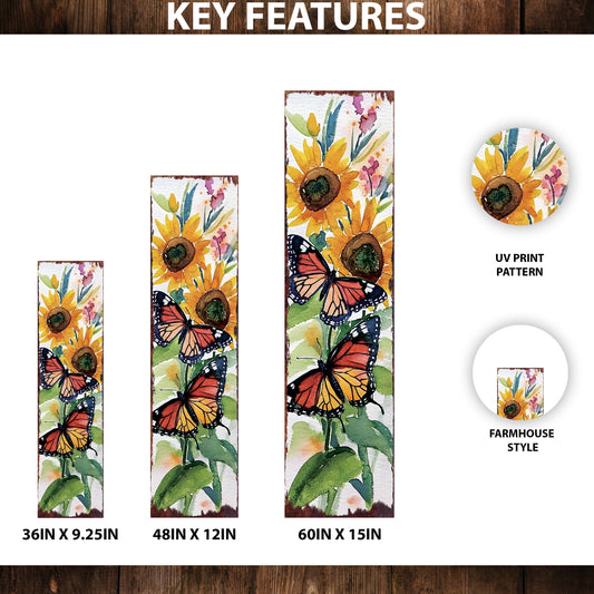 Summer Watercolor Monarch & Sunflower Porch Sign | Welcome Home Decor