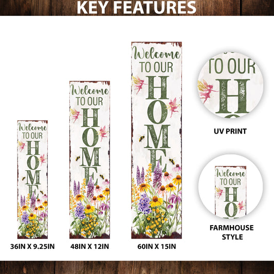 Enchanting Summer Wildflower Welcome Porch Sign with Bees & Fairies