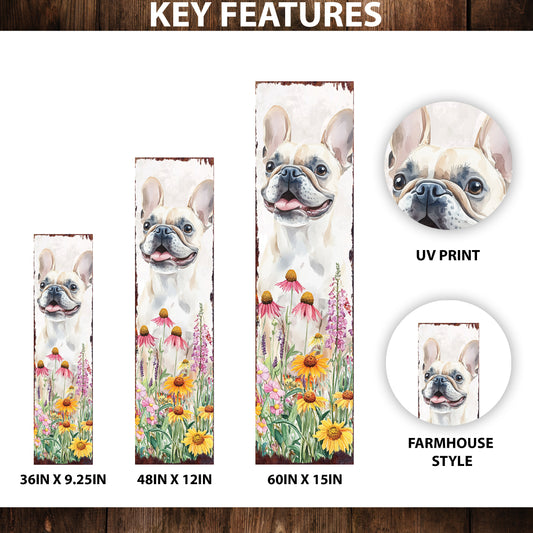 Summer Bulldog Welcome Porch Sign | Wildflower Garden Decor
