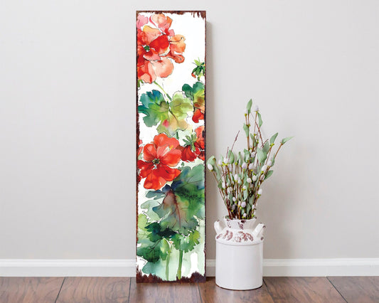Summer Geraniums Porch Sign - 48" Rustic Farmhouse Outdoor Welcome Decor