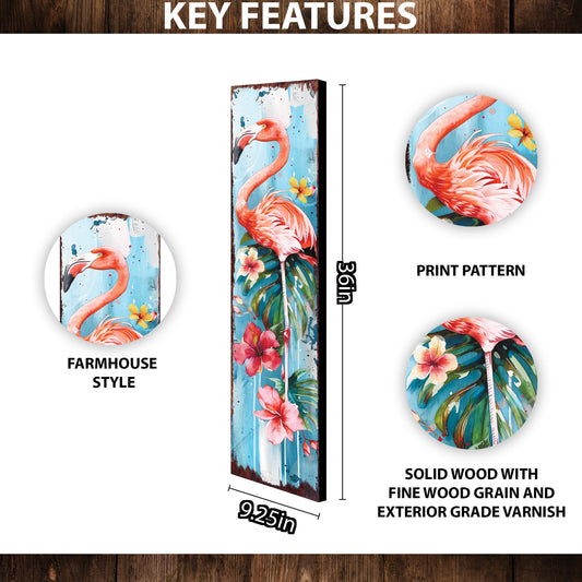 36in Summer Watercolor Flamingo Porch Sign - Rustic Farmhouse Welcome Decor